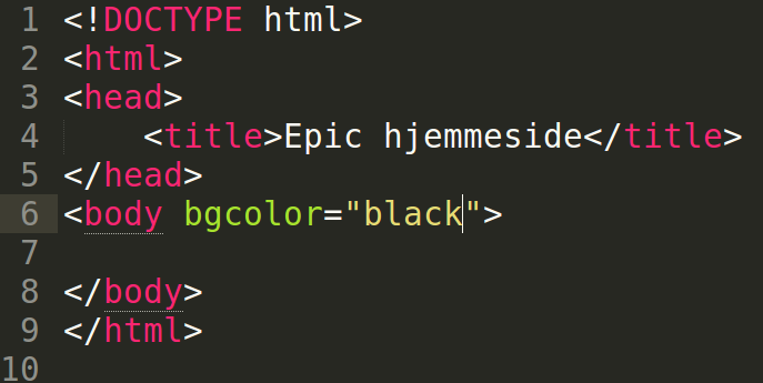 - Inne i < body >, skriv bgcolor="black"..